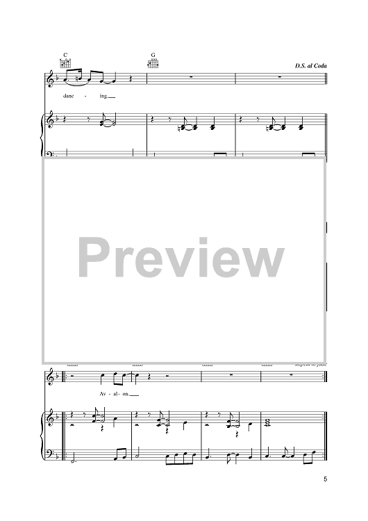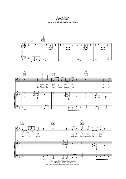 Digital Sheet Music for Avalon by Bryan Ferry, Roxy Music scored for Piano/Vocal/Chords; id:392116