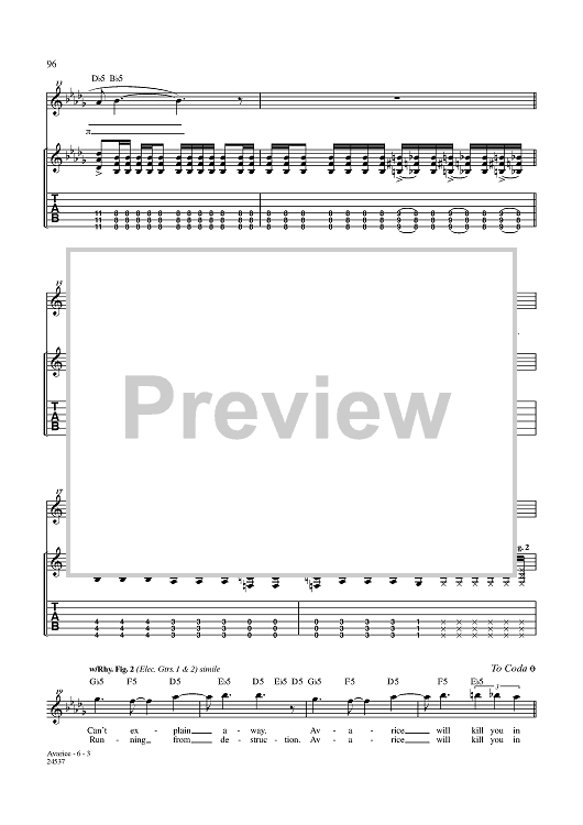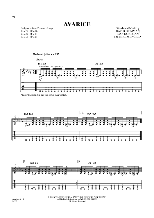 Digital Sheet Music for Avarice by Disturbed, Mike Wengren, Dan Donegan, David Draiman scored for Guitar Tab/Vocal; id:357801
