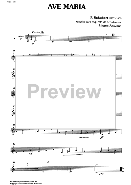 Digital Sheet Music for Ave Maria - Accordion 4 by , Franz Schubert, Edurne Zorrozúa scored for Accordion Orchestra/Electric Bass; id:353238