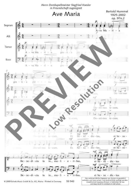 "Ave Maria - Choral Score" Sheet Music by Bertold Hummel