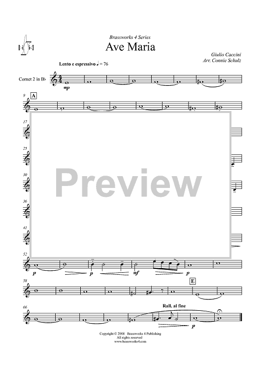 Digital Sheet Music for Ave Maria - Cornet 2 in B-flat by Giulio Caccini, Connie Schulz scored for Solo Euphonium and Brass Ensemble; id:410775