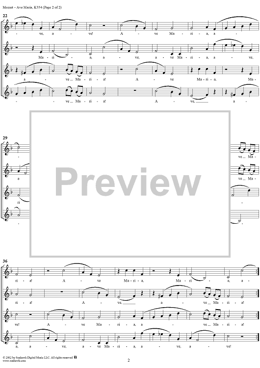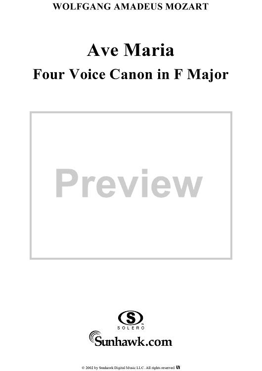 "Ave Maria, four voice canon in F Major, K554" Sheet Music by Wolfgang Amadeus Mozart