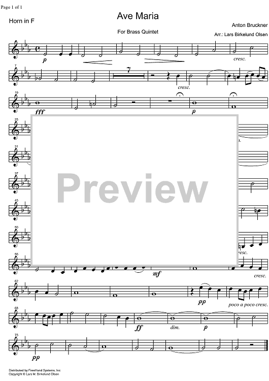 Digital Sheet Music for Ave Maria - Horn in F by , Anton Bruckner, Lars M. Birkelund Olsen scored for Brass Quintet; id:329701