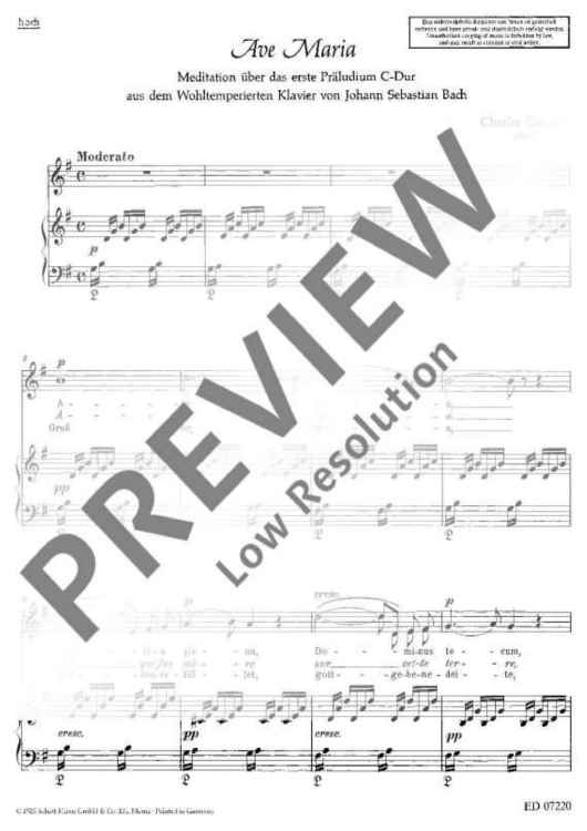 Digital Sheet Music for Ave Maria in G major by Charles Gounod scored for High Voice And Piano; Violin (cello) Ad Libitum; id:474890