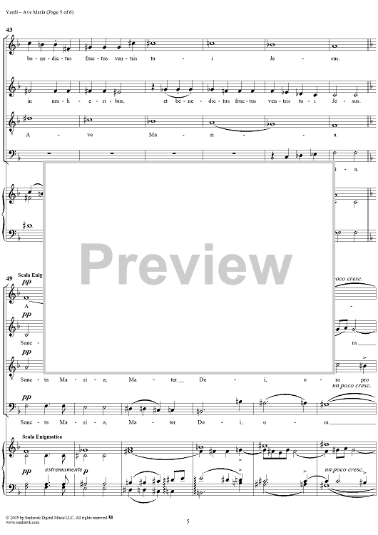 Digital Sheet Music for Ave Maria by Giuseppe Verdi scored for Mixed Choir/Piano; id:304704