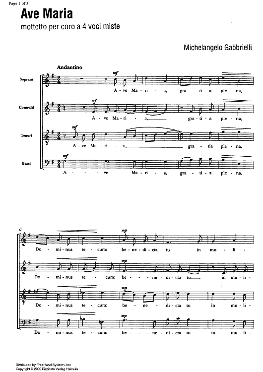 Digital Sheet Music for Ave Maria by , Michelangelo Gabbrielli scored for SATB Choir; id:330476