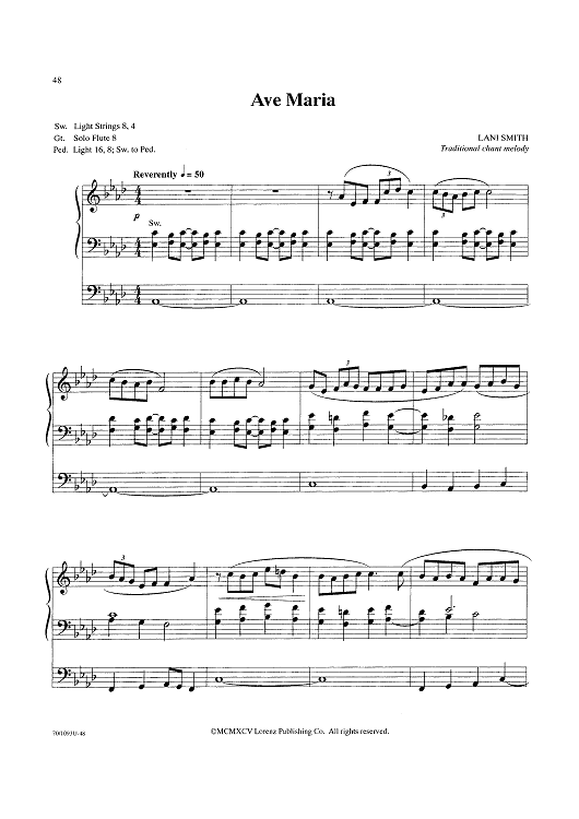 Digital Sheet Music for Ave Maria by Lani Smith, Traditional chant melody scored for Organ Solo; id:434801