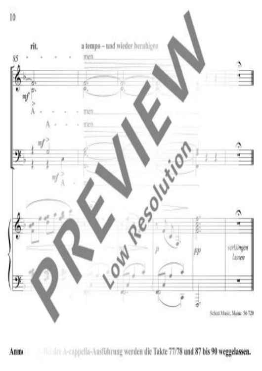 Rolf Rudin has made a name for himself as an award-winning composer far beyond the borders of Germany. Among the large number of his sacred choral compositions is also the church music setting of 'Ave Maria'. It has been published both in a version for mixed choir and in a version for three- or four-part women's choir (SSA or SSAA) and can be performed either a cappella or with piano accompaniment. The three-minute musical Latin prayer in honour of the Virgin Mary is ideal for church services. It is filled with catchy sumptuous harmonies and a tender depth of feeling which is supported instrumentally by the softly swaying ad libitum piano accompaniment.