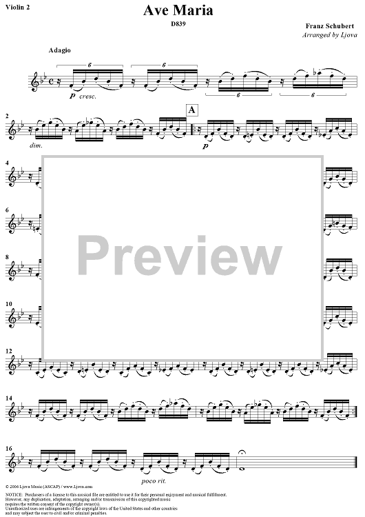 Digital Sheet Music for Ave Maria - Violin 2 by , Franz Schubert, Ljova scored for String Quartet; id:355298