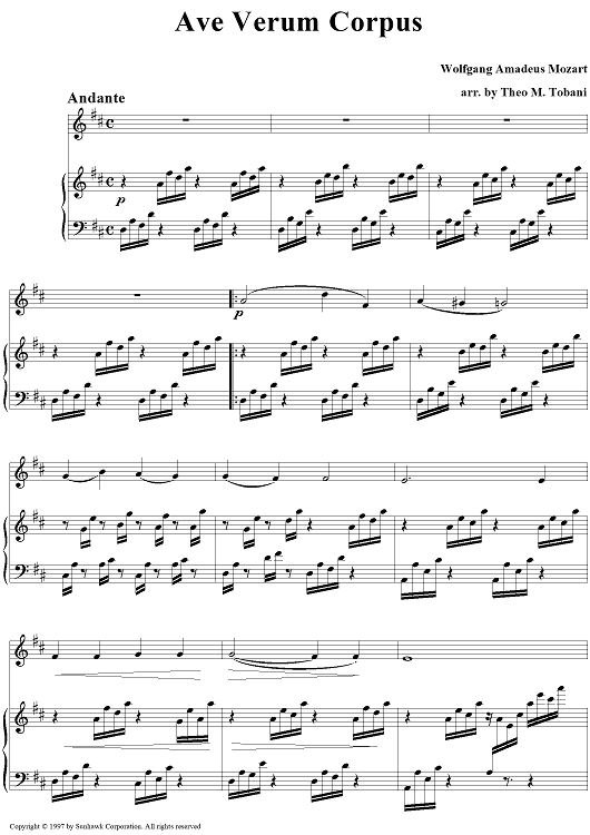Digital Sheet Music for Ave Verum Corpus, K618 by Wolfgang Amadeus Mozart, Theodore Moses Tobani scored for Flute/Piano; id:94855