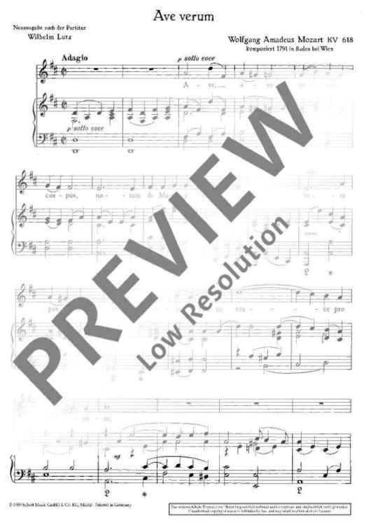 Digital Sheet Music for Ave verum by Wolfgang Amadeus Mozart scored for Medium (low) Voice And Piano (organ/harmonium); id:475012