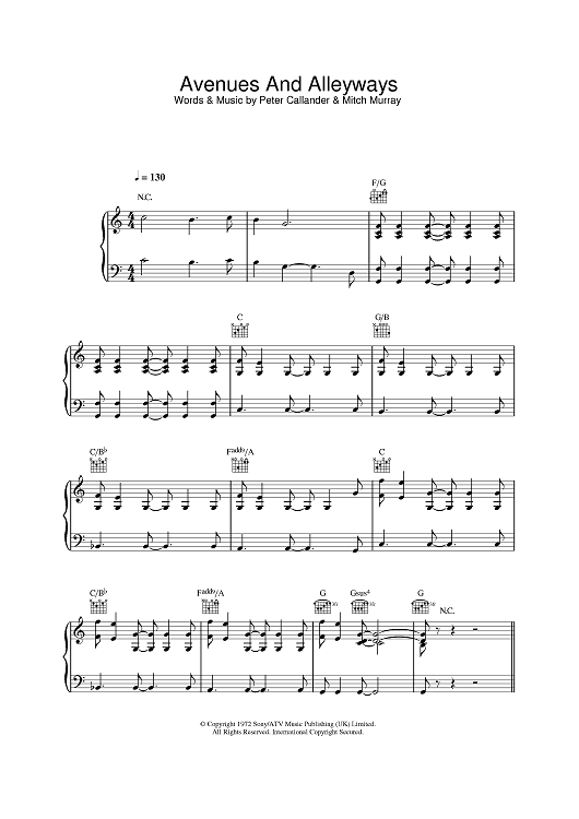 Digital Sheet Music for Avenues & Alleyways by Mitch Murray, Peter Callander, Tony Christie scored for Piano/Vocal/Chords; id:386593