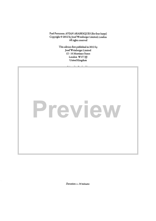 Digital Sheet Music for Avian Arabesques - Harp 2 by , Paul Patterson scored for Harp Quartet; id:440833