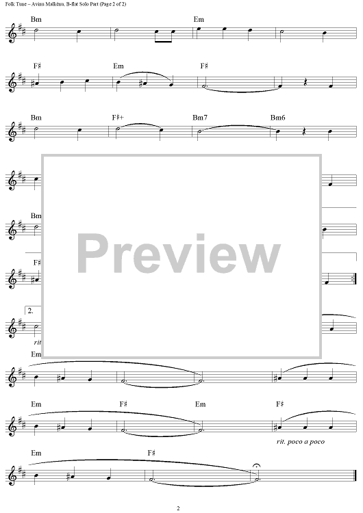 Digital Sheet Music for Avinu Malkénu - B-flat Instrument by Traditional scored for B-flat Instrument; id:220412