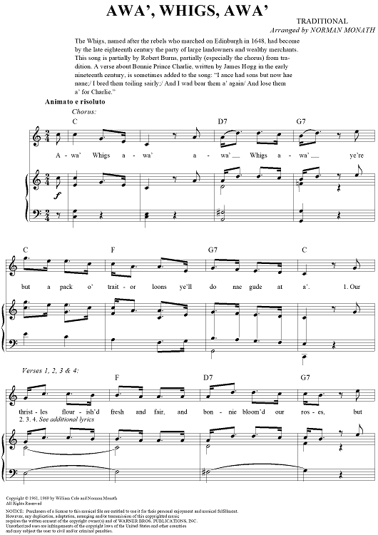 Digital Sheet Music for Awa', Whigs, Awa' by Norman Monath, Traditional scored for Piano/Vocal/Chords; id:259532