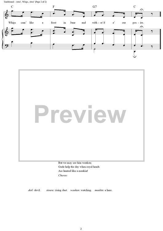 "Awa', Whigs, Awa'" Sheet Music by Traditional
