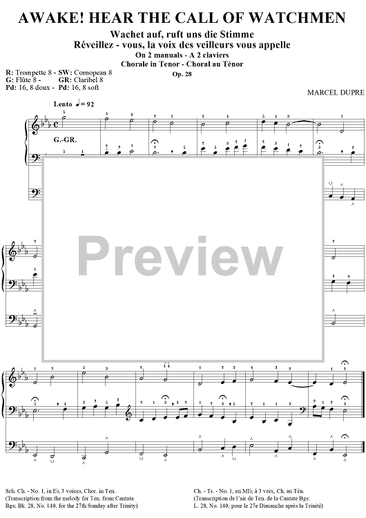 Digital Sheet Music for Awake! Hear the Call of Watchmen, from "Seventy-Nine Chorales", Op. 28, No. 72 by Marcel Dupre scored for Organ Solo; id:271320