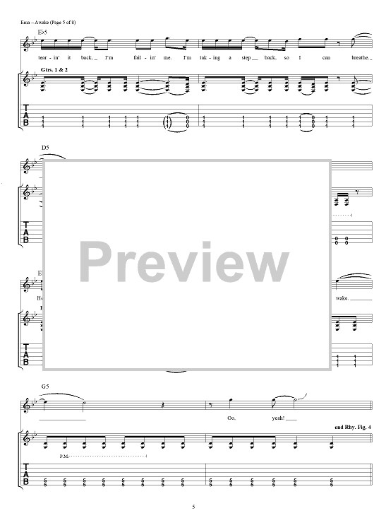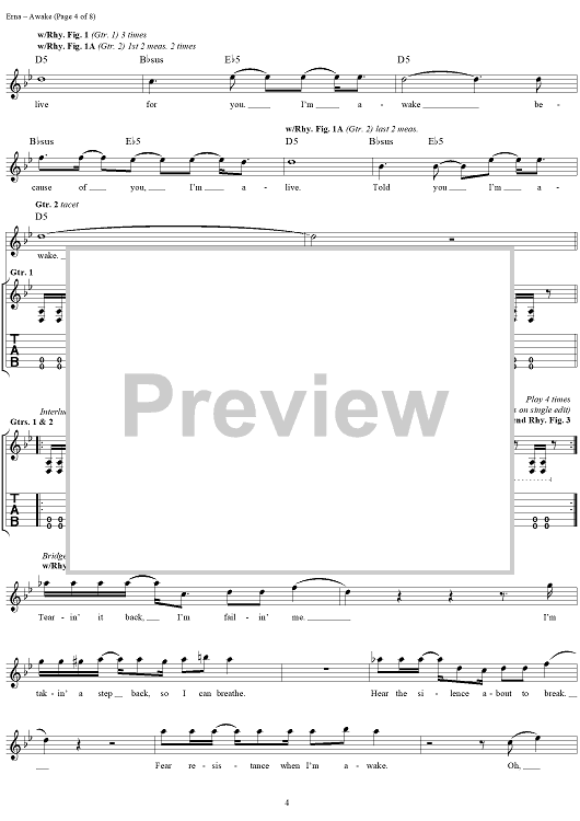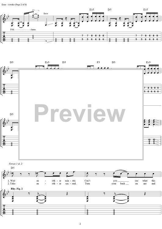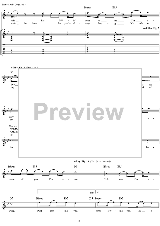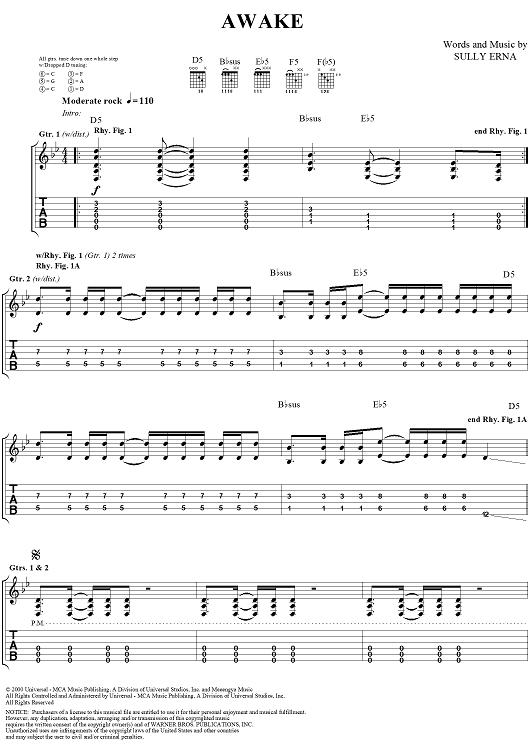 Digital Sheet Music for Awake by Godsmack scored for Guitar Tab/Vocal; id:285251