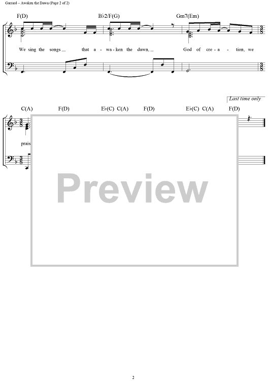 Digital Sheet Music for Awaken the Dawn (Sing to the Lord) by Stu G scored for Piano/Vocal/Chords; id:183966