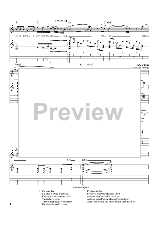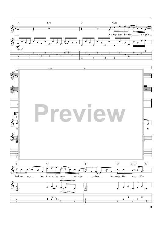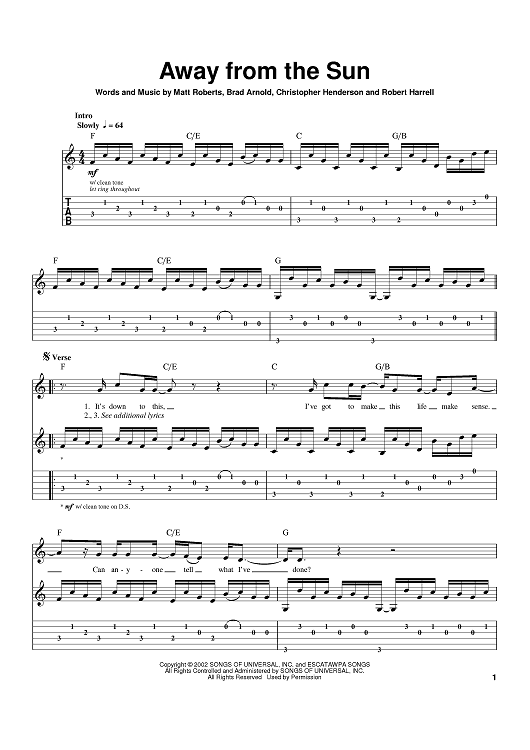 Digital Sheet Music for Away From The Sun by 3 Doors Down, Matt Roberts, Brad Arnold, Todd Harrell, Chris Henderson scored for Guitar Tab; id:392846