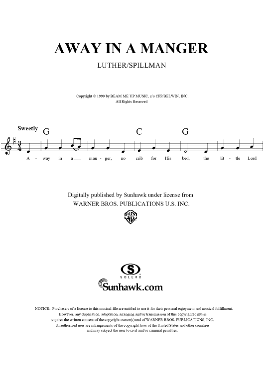 Digital Sheet Music for Away in a Manger by Martin Luther, Jonathan E. Spilman scored for Lead Sheet; id:118738