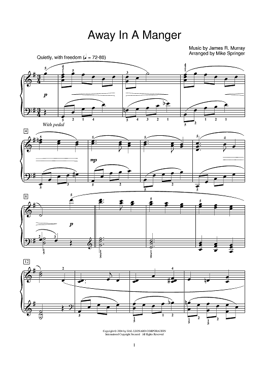 Digital Sheet Music for Away In A Manger by James Ramsey Murray, Traditional, John T. McFarland, Mike Springer scored for Piano; id:379247