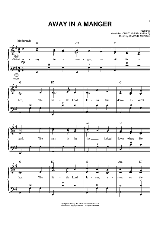 Digital Sheet Music for Away In A Manger by James Ramsey Murray, John T. McFarland scored for Accordion; id:397948