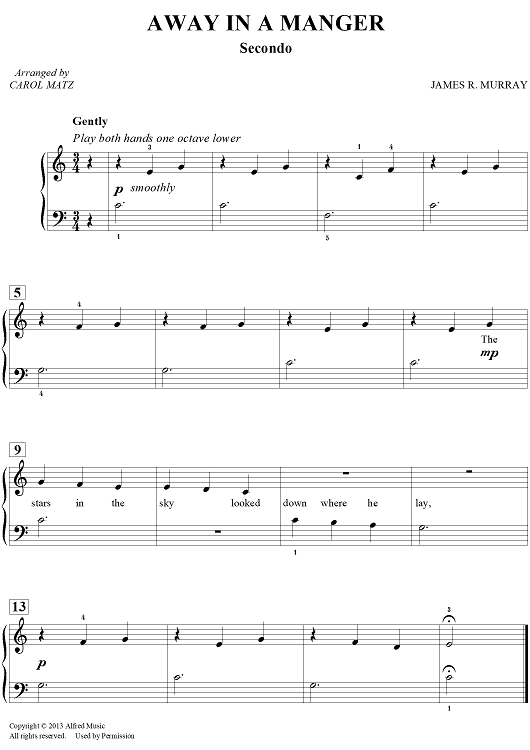 Digital Sheet Music for Away in a Manger by James Ramsey Murray, Carol Matz scored for 1 Piano, 4 Hands; id:454099
