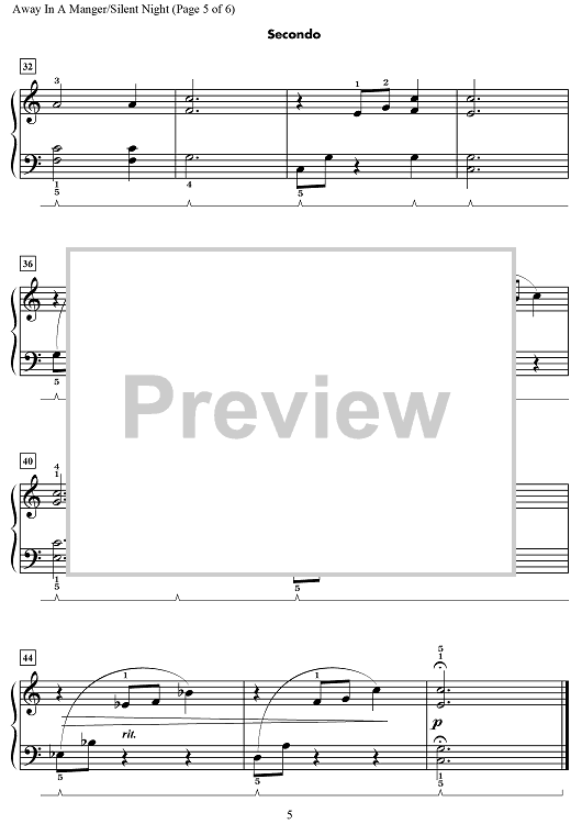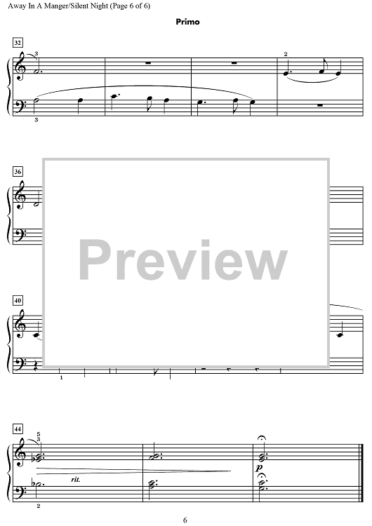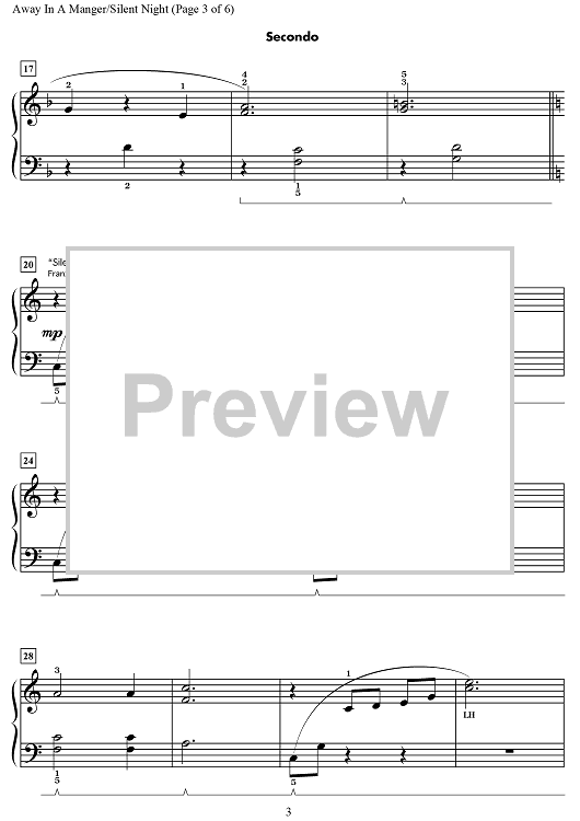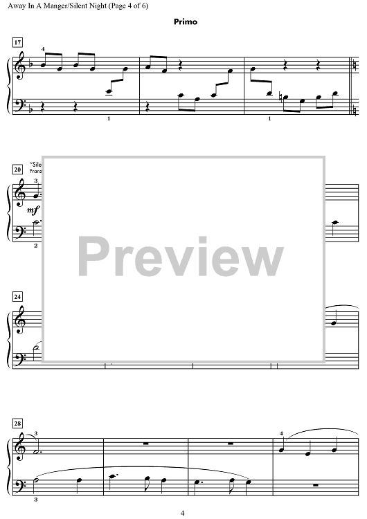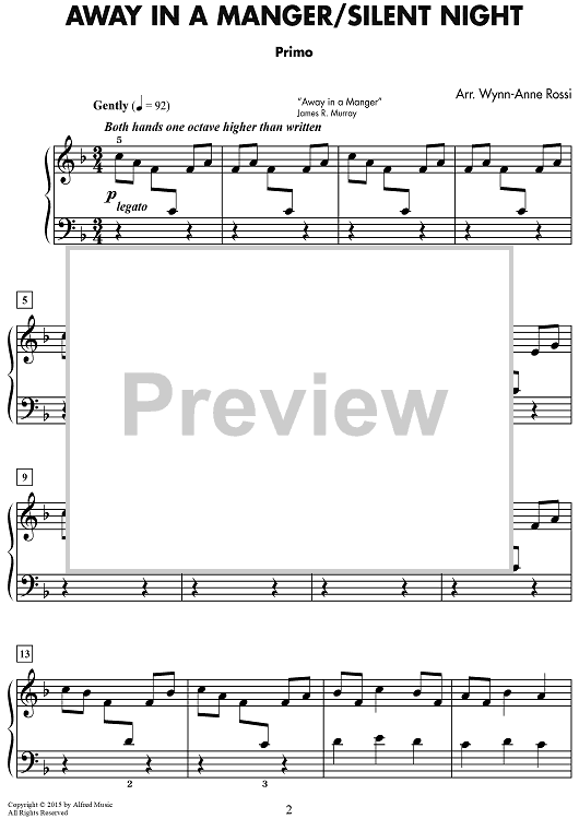 Digital Sheet Music for Away in a Manger / Silent Night by Wynn-Anne Rossi scored for 1 Piano, 4 Hands; id:469692