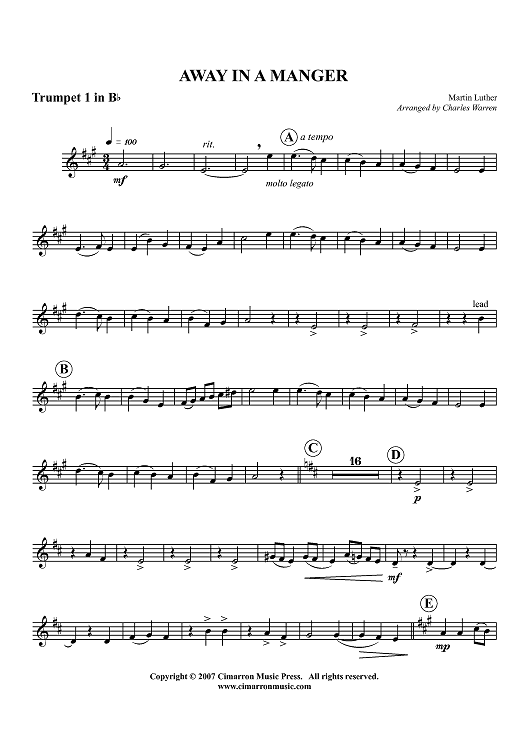 "Away In A Manger - Trumpet 1 in B-flat" Sheet Music by Martin Luther