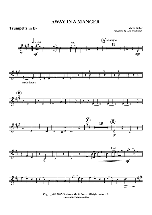 "Away In A Manger - Trumpet 2 in B-flat" Sheet Music by Martin Luther