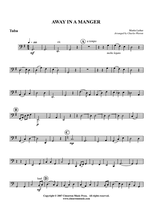 "Away In A Manger - Tuba" Sheet Music by Martin Luther