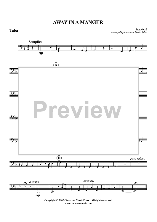 "Away in a Manger - Tuba" Sheet Music by Traditional