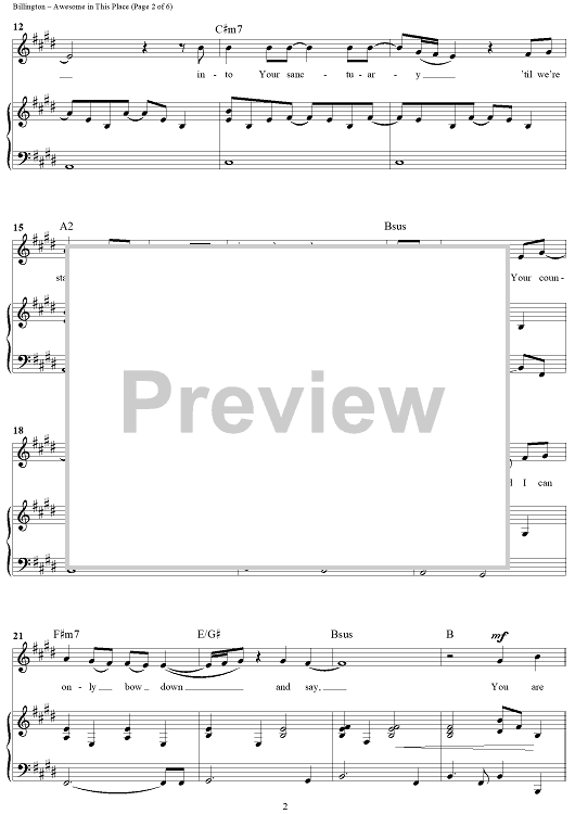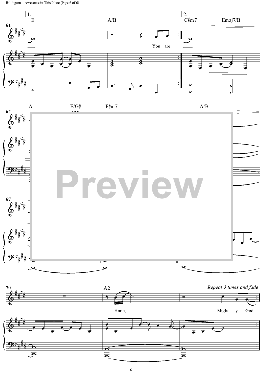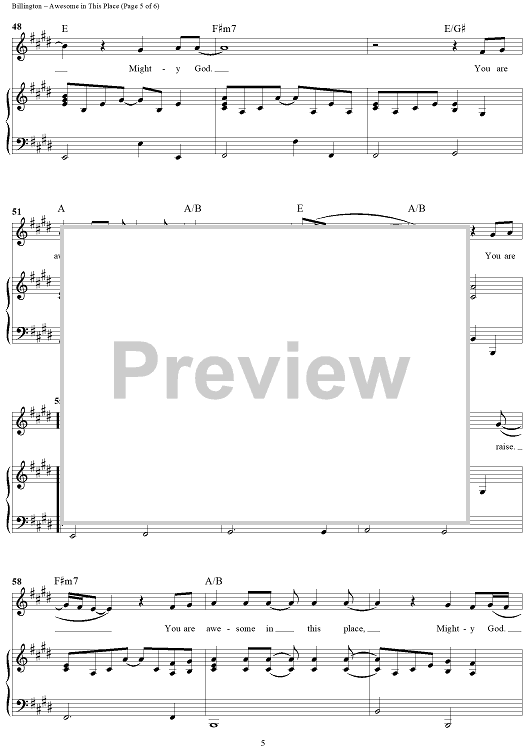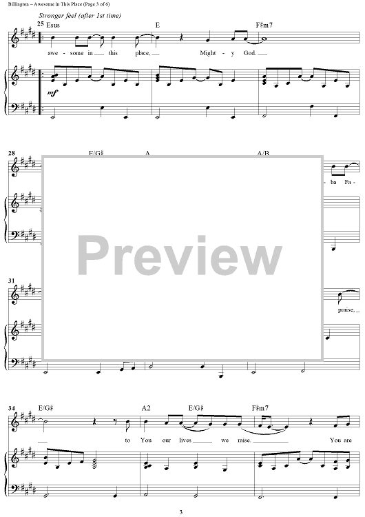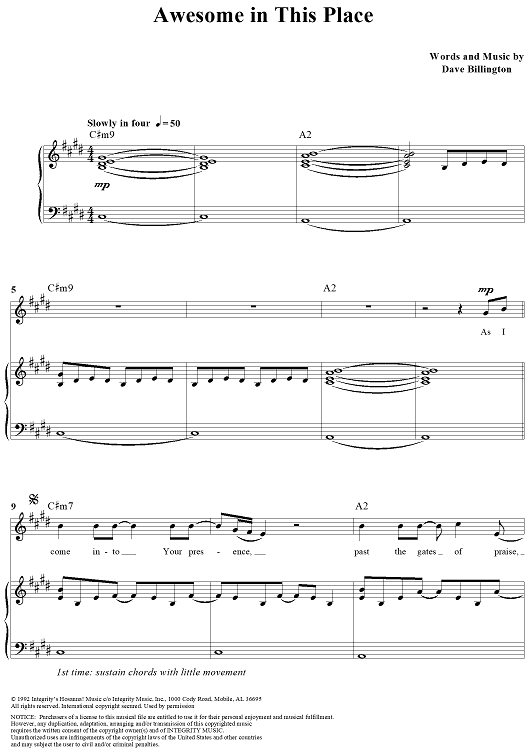 Digital Sheet Music for Awesome in This Place by Dave Billington scored for Piano/Vocal/Chords; id:308282