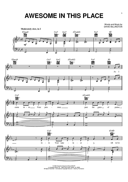 Digital Sheet Music for Awesome In This Place by David Billington scored for Piano/Vocal/Chords; id:370996
