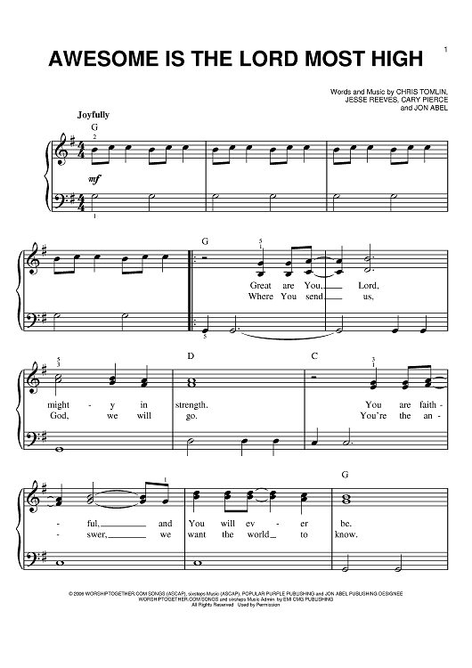 Digital Sheet Music for Awesome Is The Lord Most High by Chris Tomlin, Jesse Reeves, Brenton Brown, Cary Pierce, Jon Abel scored for Easy Piano; id:397081