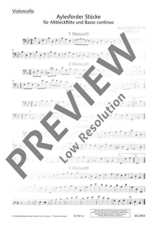 These little pieces for the most part come from Handel's Aylesforder Pieces which were published for the first time a few years ago. As almost all of them are written in two-voice versions, i.e. as melody with bass, they are ideal for performances with recorder and basso continuo (piano, harpsichord, spinet). In the original form, the pieces can also be performed as duets.
