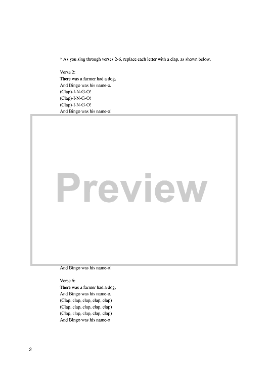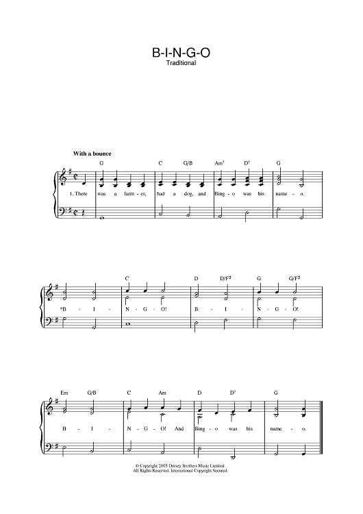 Digital Sheet Music for B-I-N-G-O by scored for Piano/Vocal/Chords; id:386448