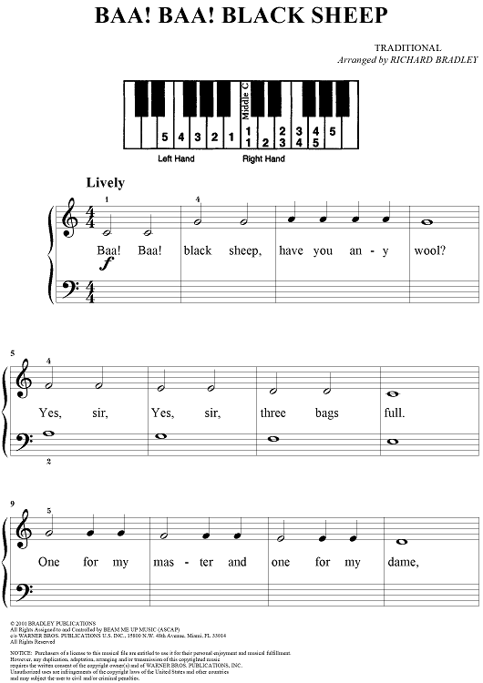 Digital Sheet Music for Baa! Baa! Black Sheep by Richard Bradley, Traditional scored for Five Finger Piano; id:283373