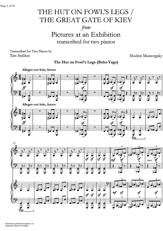Digital Sheet Music for Baba-Yaga & The Great Gates of Kiev from Pictures at an Exhibition by , Modest Musorgsky, Tim Seddon scored for 2 Pianos; id:337469