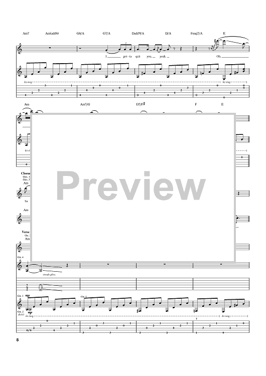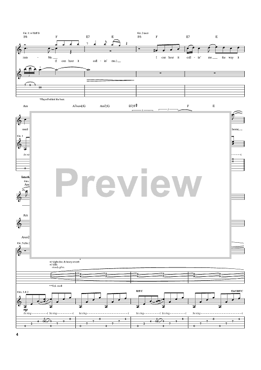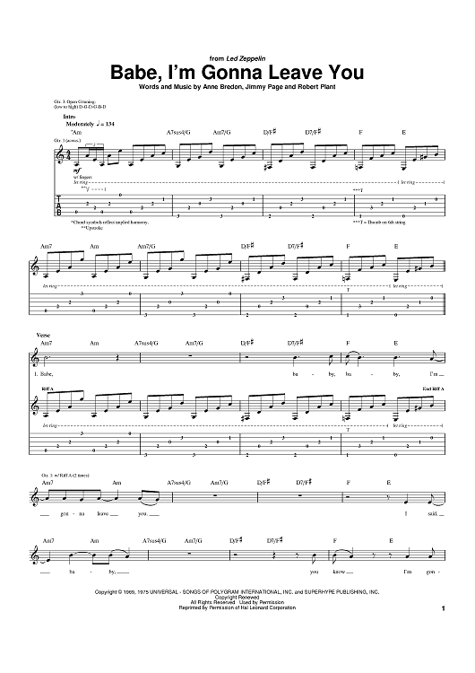 Digital Sheet Music for Babe, I'm Gonna Leave You by Jimmy Page, Great White, Led Zeppelin, Anne Bredon, Robert Plant scored for Guitar Tab; id:393658