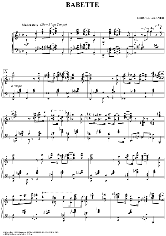 Digital Sheet Music for Babette by Erroll Garner scored for Piano Solo; id:457646