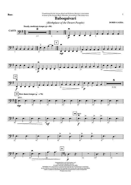 "Baboquivari (Birthplace of the Desert People) - Bass" Sheet Music by Doris Gazda