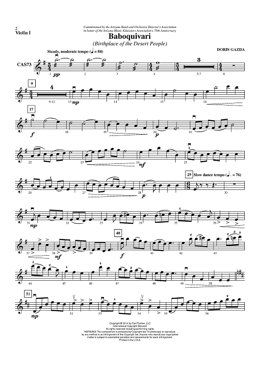 "Baboquivari (Birthplace of the Desert People) - Violin 1" Sheet Music by Doris Gazda