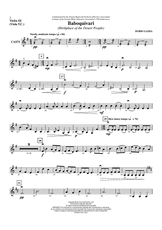 "Baboquivari (Birthplace of the Desert People) - Violin 3 (Viola T.C.)" Sheet Music by Doris Gazda