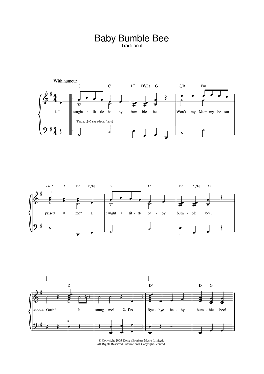 Digital Sheet Music for Baby Bumble Bee by scored for Piano/Vocal/Chords; id:386129