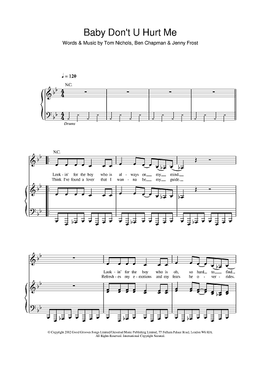 Digital Sheet Music for Baby Don't U Hurt Me by Atomic Kitten scored for Piano/Vocal/Chords; id:377715