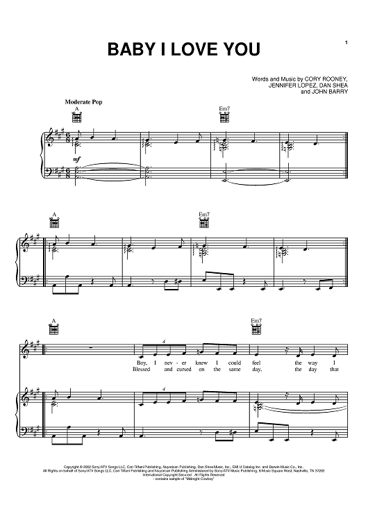 Digital Sheet Music for Baby I Love You by Jennifer Lopez, Dan Shea, Cory Rooney scored for Piano/Vocal/Chords; id:371386