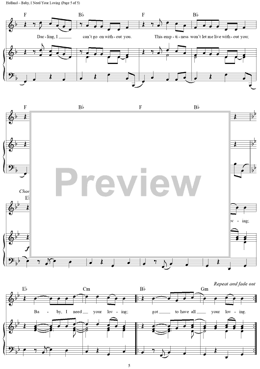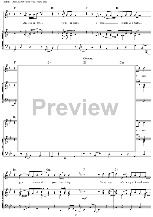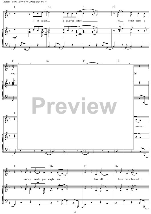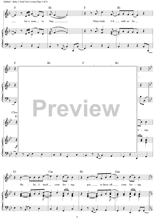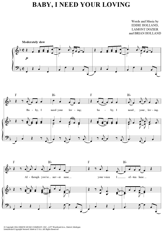 Digital Sheet Music for Baby, I Need Your Loving by Four Tops, Lamont Dozier, Brian Holland, Eddie Holland scored for Piano/Vocal/Chords; id:364014