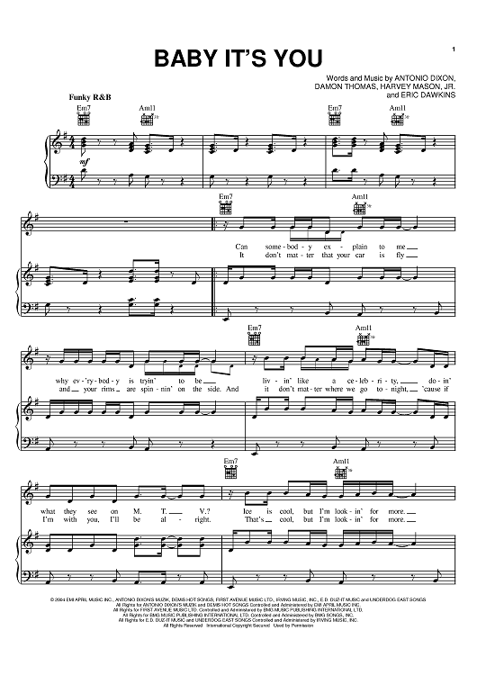 Digital Sheet Music for Baby It's You by Eric Dawkins, Damon Thomas, JoJo, Bow Wow, Antonio Dixon, Harvey Mason, Jr. scored for Piano/Vocal/Chords; id:380323